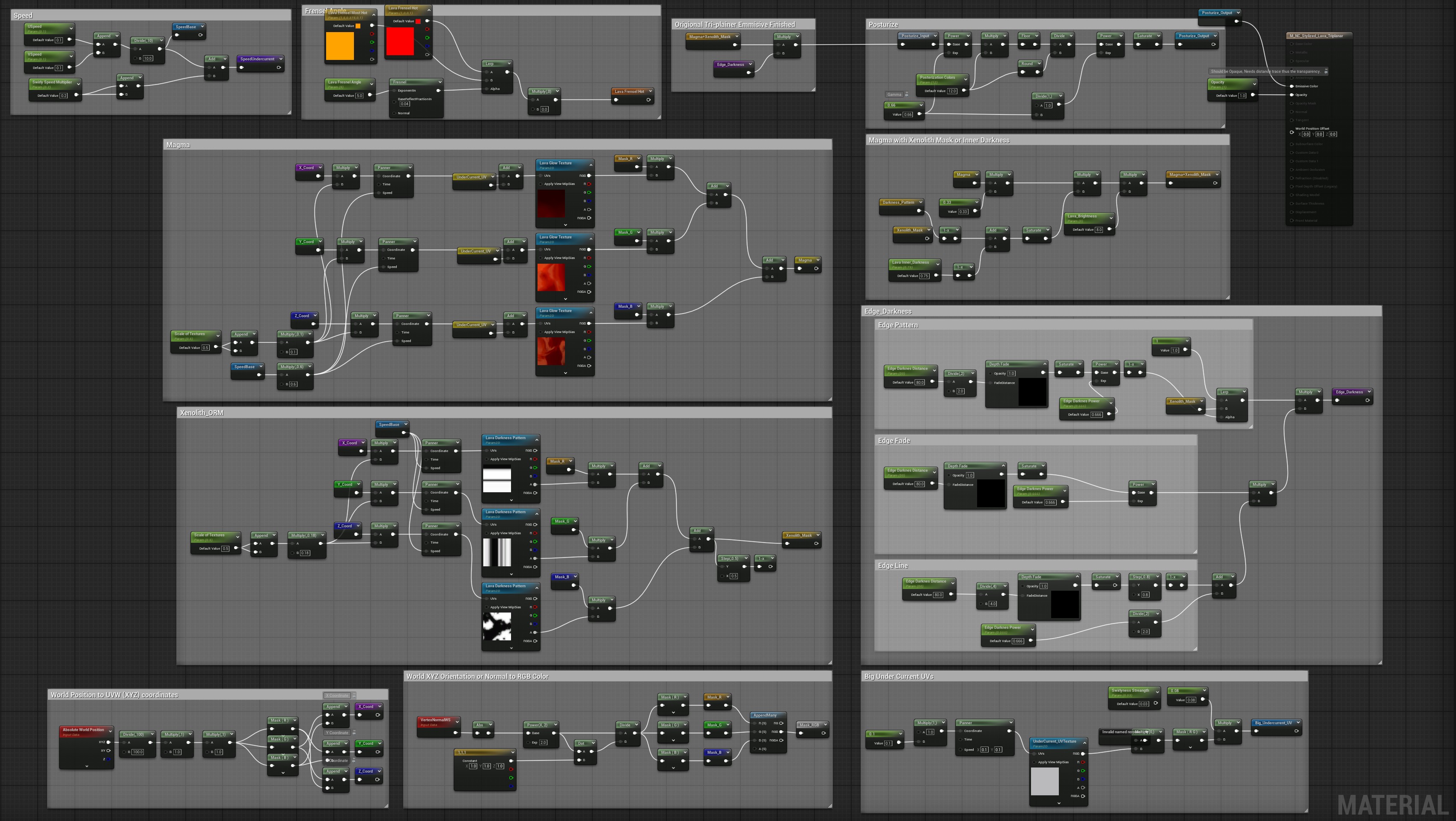 working in Unreal; Setting up materials and skeleton, skinning, rigging,